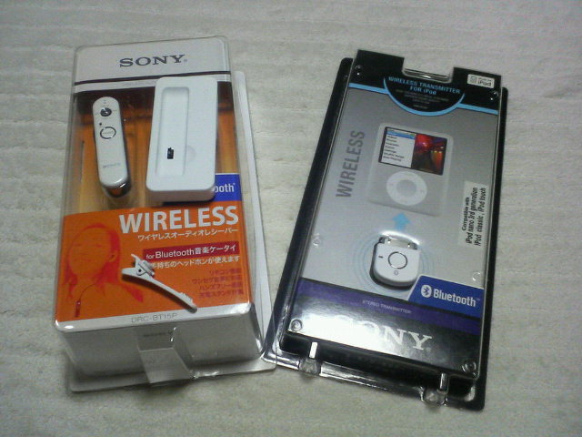 で!、右側が同じく Bluetooth の iPod 用トランスミッター